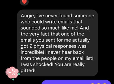 Flexibility is the name of the game. We get on one strategy call so I understand your vision. From there, depending on which package you choose, emails are eitheruploaded in a Google drive for you (or your VA) to plug into your email service provider. All sections for emails included (subject lines, preview texts, CTA's)